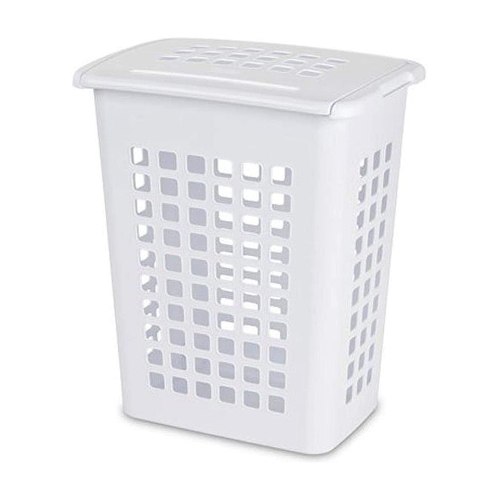 Simplify laundry day with the Sterilite Rectangular Hamper in classic white. Designed with a modern grid-style ventilation pattern, this hamper promotes airflow to keep clothes fresh between washes. Its tall, slim profile saves space in bathrooms, bedrooms, or closets, while the snap-on lid keeps laundry out of sight. Made from durable plastic, this lightweight hamper is easy to carry and clean—making it a practical solution for daily laundry organization.