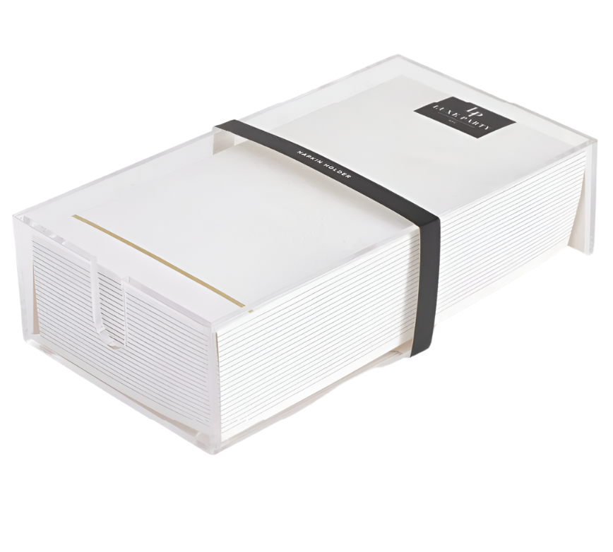 Add a touch of elegance to your entertaining essentials with the Acrylic Guest Napkin Holders by Luxe Party. Designed to combine sleek style with practical function, these holders are made from high-quality, crystal-clear acrylic that enhances any table setting. Measuring 8.75" x 5" x 2.45", they can neatly accommodate two full packages of guest napkins, making them ideal for both everyday use and special occasions. Whether you're hosting a formal dinner or a casual gathering, these napkin holders bring refined organization to your tabletop.