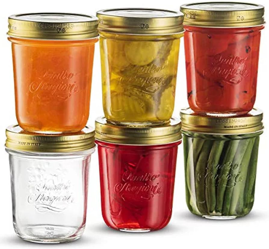 Bormioli Rocco Quattro Stagioni set of 4 Clear Airtight Mason Jars, 6.75 Oz. Made from BPA Free Durable Glass, Made In Italy.