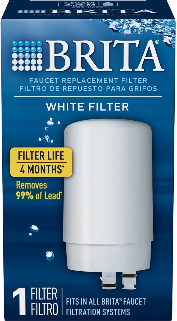 Ensure cleaner, great-tasting water straight from your faucet with the Brita On Tap Water Filtration System Replacement Filter. Designed to filter up to 100 gallons of tap water, this long-lasting filter is perfect for reducing common contaminants such as lead, asbestos, chlorine (taste and odor), and more. Its convenient 1-click installation makes replacements quick and hassle-free, helping you maintain optimal water quality without the need for tools or complicated setup.