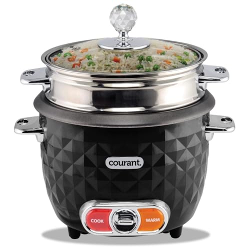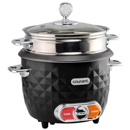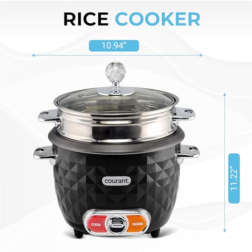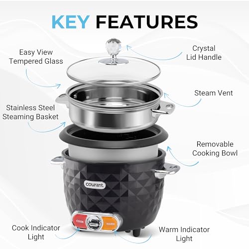 This electric rice cooker is designed for convenient, one-touch cooking of rice and other grains, with an automatic keep-warm function to maintain serving temperature. Featuring a large capacity and a durable stainless steel inner pot, it is suitable for everyday meals and family portions. The included glass lid allows easy monitoring while cooking, and the removable components make cleanup simple. Its textured exterior and compact countertop footprint combine functionality with modern style, making it a practical addition to any kitchen.