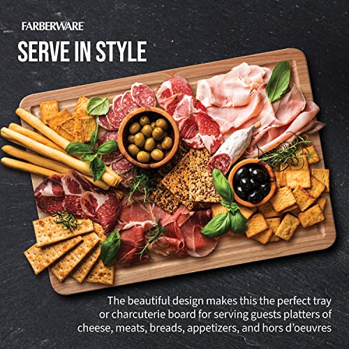 Farberware Extra-Large Cutting Board with Perimeter Juice Trench, Reversible Chopping Board for Kitchen Meal Prep and Serving, Charcuterie Board Set, 14-Inch x 20-Inch, Rubberwood