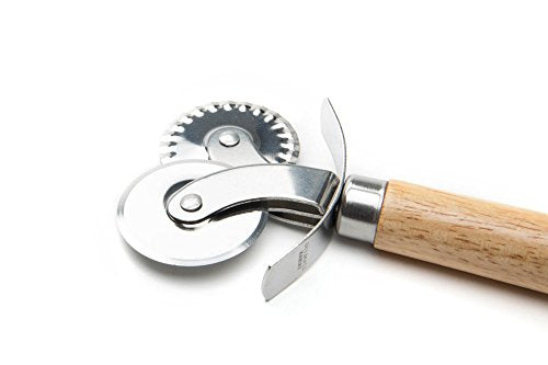 This pastry wheel cutter features a sturdy wooden handle paired with durable stainless steel cutting wheels for precise dough work. Designed with both smooth and fluted edges, it’s ideal for cutting pastry, pasta, ravioli, pie crusts, and cookie dough with clean, consistent results. The comfortable wooden grip offers control and stability, making it a reliable tool for both everyday baking and more detailed pastry projects. Built for durability and ease of use, this cutter is a practical addition to any kitchen or bakeware collection.