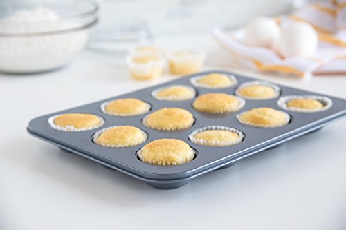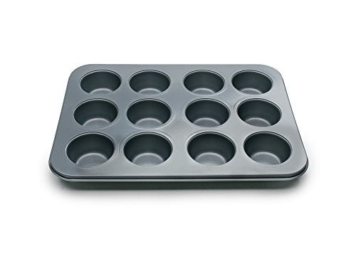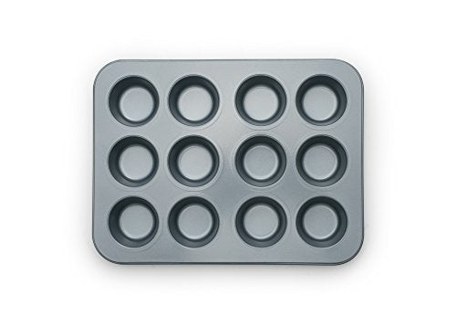 This 12-cup non-stick muffin pan is designed for consistent, even baking and easy release. The durable non-stick coating allows muffins and cupcakes to lift cleanly with minimal residue, making cleanup quick and effortless. Evenly sized cups ensure uniform results every time, whether baking classic muffins, cupcakes, or savory egg bites. The sturdy construction helps resist warping and provides reliable performance for everyday home baking.
