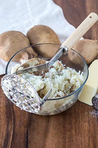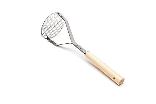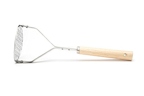 This stainless steel potato masher features a durable wire mashing head designed to easily break down potatoes, root vegetables, and soft foods into smooth, consistent textures. The sturdy stainless steel construction provides reliable performance, while the natural wooden handle offers a comfortable grip and classic kitchen appeal. Ideal for everyday cooking, this masher is a simple, effective tool for preparing mashed potatoes, vegetables, and more.