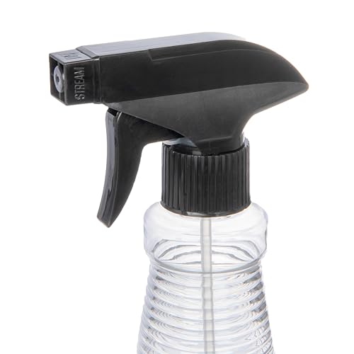 This set of clear plastic spray bottles features durable black trigger sprayers designed for easy, consistent misting. Each bottle includes a long internal tube for full-volume use and a contoured shape for a secure grip. Perfect for cleaning solutions, household sprays, gardening, and commercial use.
