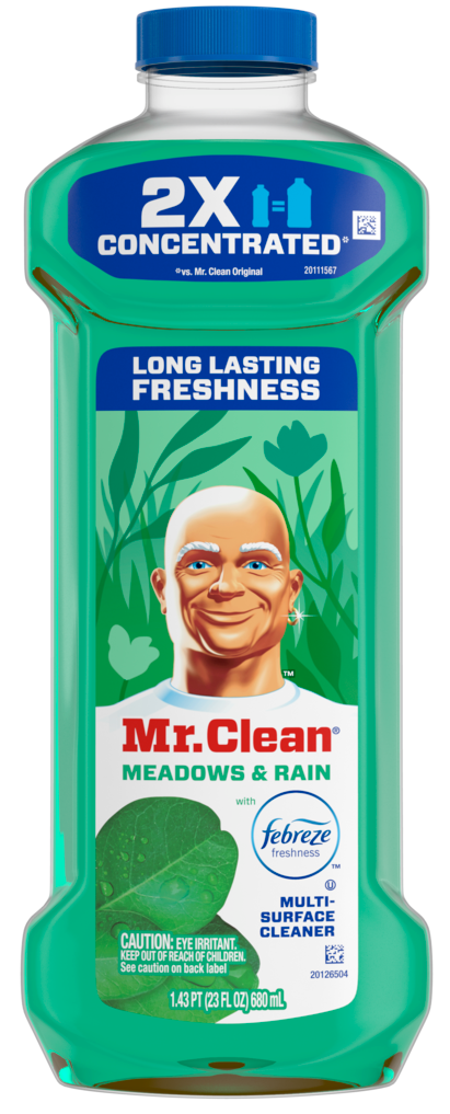 Mr. Clean with Febreze Meadows and Rain Multi-Surface Cleaner delivers powerful cleaning with a refreshing, long-lasting scent. This 2X concentrated formula tackles grease, dirt, and everyday messes across multiple surfaces, leaving floors, countertops, and sealed surfaces visibly clean and smelling fresh. Designed for efficient cleaning with less water, it provides dependable performance for whole-home use while infusing spaces with the crisp Meadows and Rain fragrance.