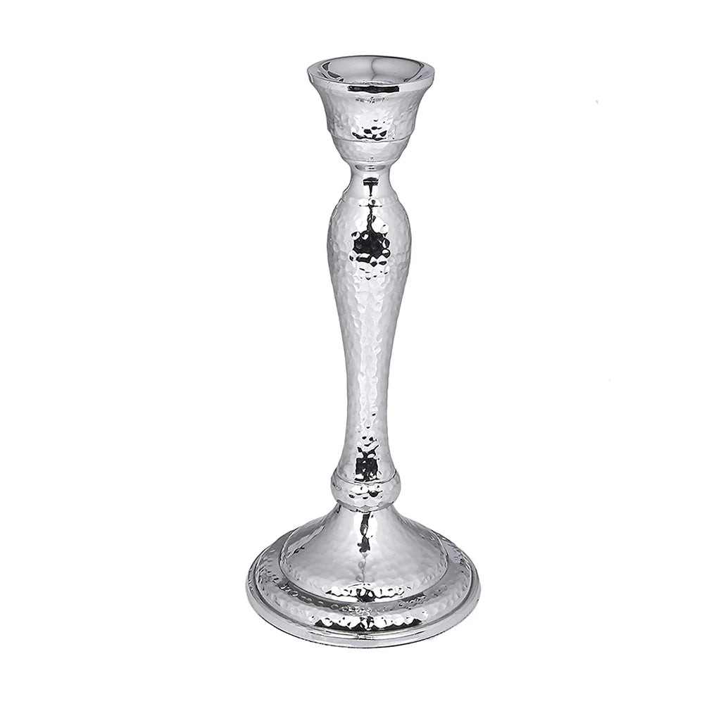 The Classic Touch 10.5" Nickel Plated Candlestick brings timeless sophistication to your table or mantle. This single candlestick is crafted from high-grade Metal and finished in a lustrous Nickel Plated tone. Measuring 10.5 inches tall and weighing 2 lbs, it provides a sturdy and elegant base for taper candles. With its sleek design and durable build, it's a beautiful and practical addition to your candle holder collection for Shabbat, festive occasions, or everyday elegance.