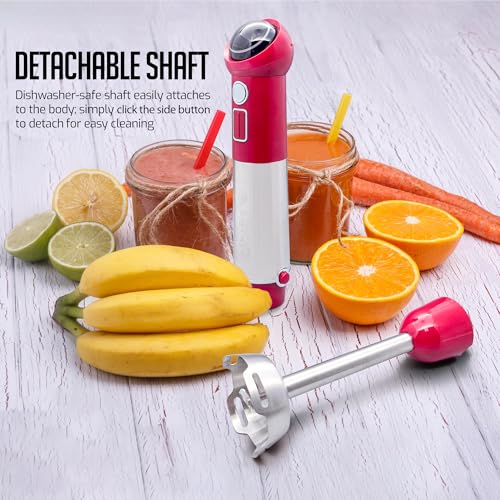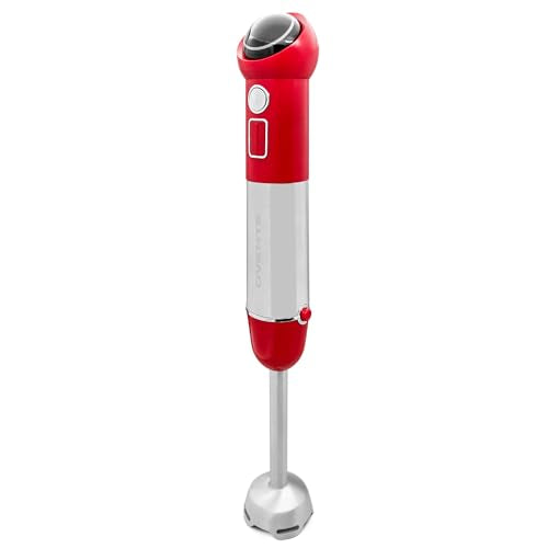 The OVENTE Cordless Immersion Hand Blender combines power, portability, and convenience in a sleek red design. Featuring a 300W rechargeable motor, this handheld stick blender is ideal for smoothies, shakes, soups, sauces, and baby food without the hassle of cords. The detachable stainless steel blending shaft allows for easy cleaning and compact storage, while the non-slip ergonomic handle ensures comfortable control during use. With multiple speed settings activated through an intuitive pulse sensor, this blender delivers smooth, consistent results wherever you need it in the kitchen.
