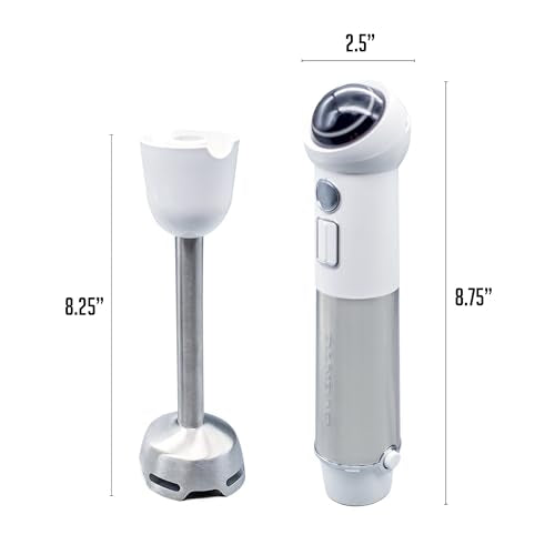 The OVENTE Cordless Immersion Hand Blender is a sleek, portable solution for effortless blending anywhere in the kitchen. Powered by a 300W rechargeable motor, this handheld stick blender delivers smooth and consistent results for smoothies, shakes, sauces, soups, and baby food. The stainless steel blending shaft is detachable for easy cleaning and storage, while the non-slip handle ensures comfortable control during use. Featuring a pulse-activated speed sensor with multiple speed settings, this compact and lightweight blender combines convenience, power, and modern design for everyday blending tasks without the hassle of cords.