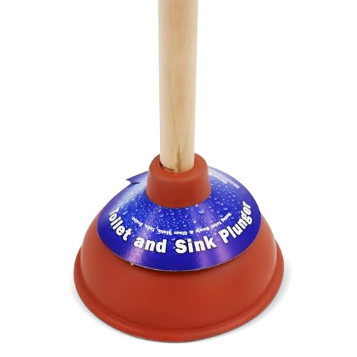 This classic red toilet plunger features a sturdy 21-inch wooden handle and a durable 6-inch rubber cup designed for strong suction and effective clog removal. Ideal for toilets, sinks, and general household use, the plunger provides reliable performance and a comfortable grip. Lightweight yet built to last, it’s an essential tool for any home or commercial cleanup kit.