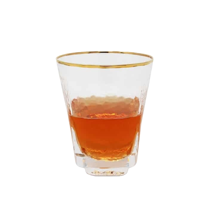 Set of 6 Hammered Square Shaped Wine Glass with Gold Trim